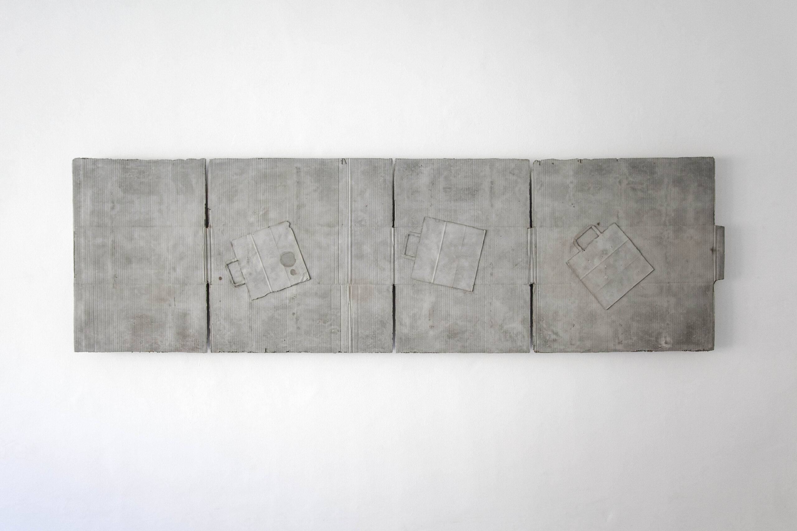 The interplay of ephemerality in cardboard and strength and semi-permanence in concrete questions perceptions of evanescence and highlights the power of transition and causal relationships. Details of one material take on a new life when crystalized within the details of another. The expansion of the work into a large-scale piece is an invitation to be encompassed into a world neither real nor false, but simply captured in a state of revision or flux.