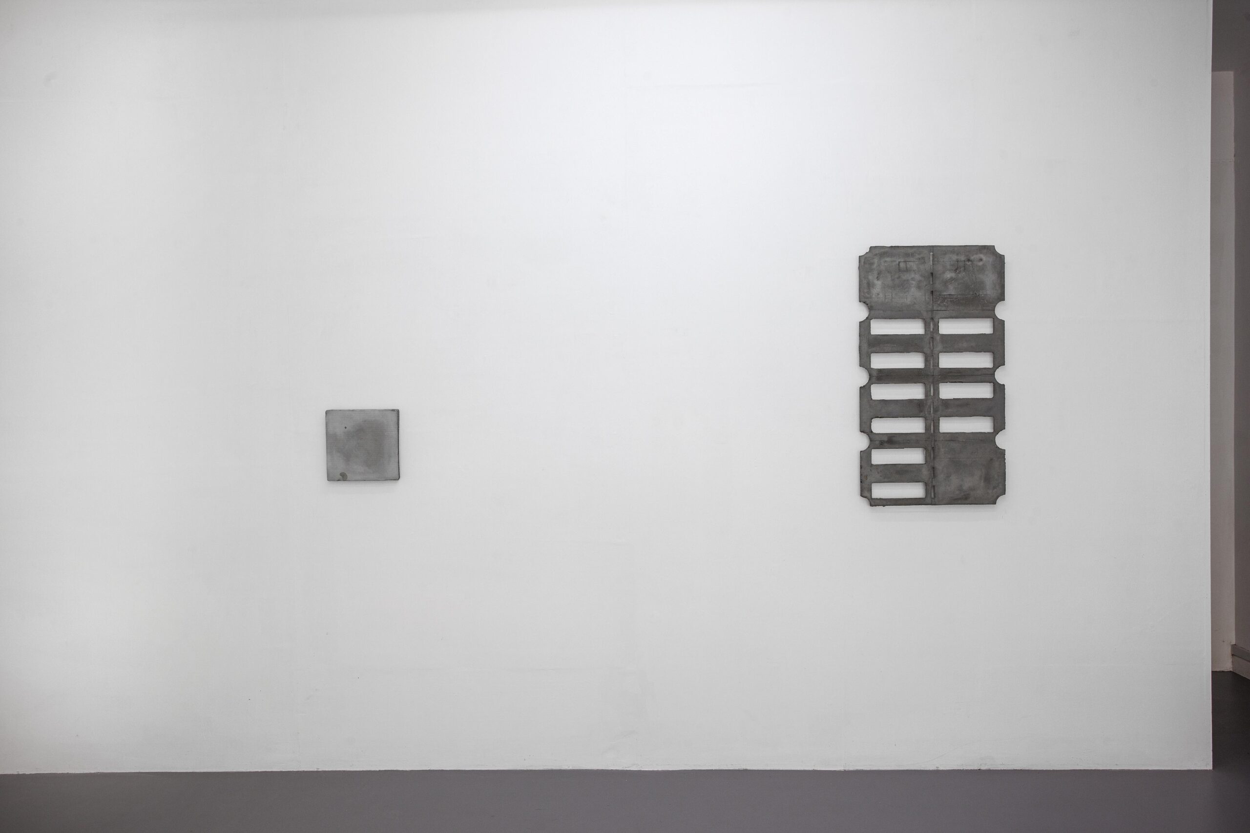 Left: It all unravels (study for Frith Street), Glass reinforced concrete panel mounted on aluminium, 26 x 26 cm, 2021