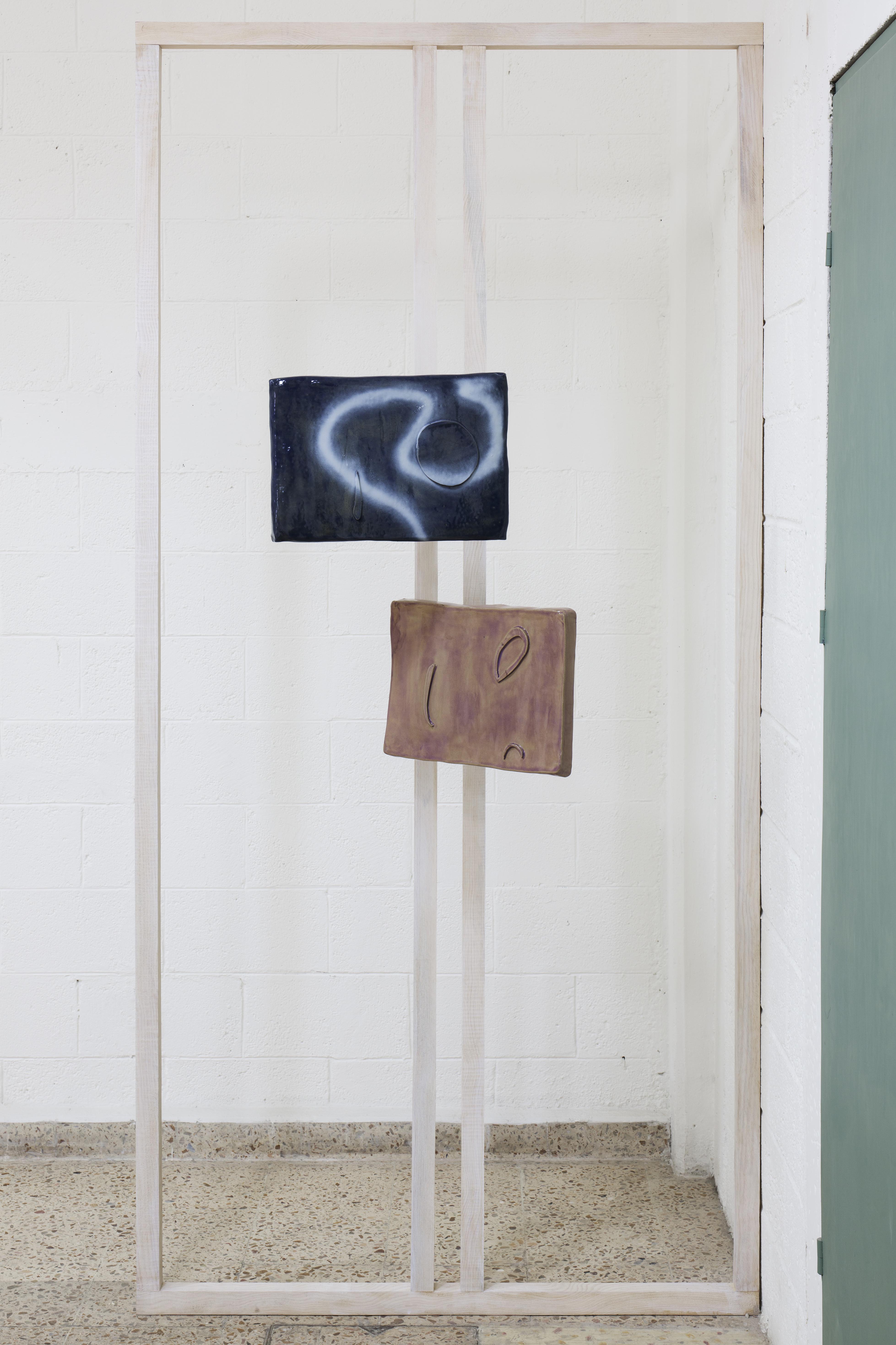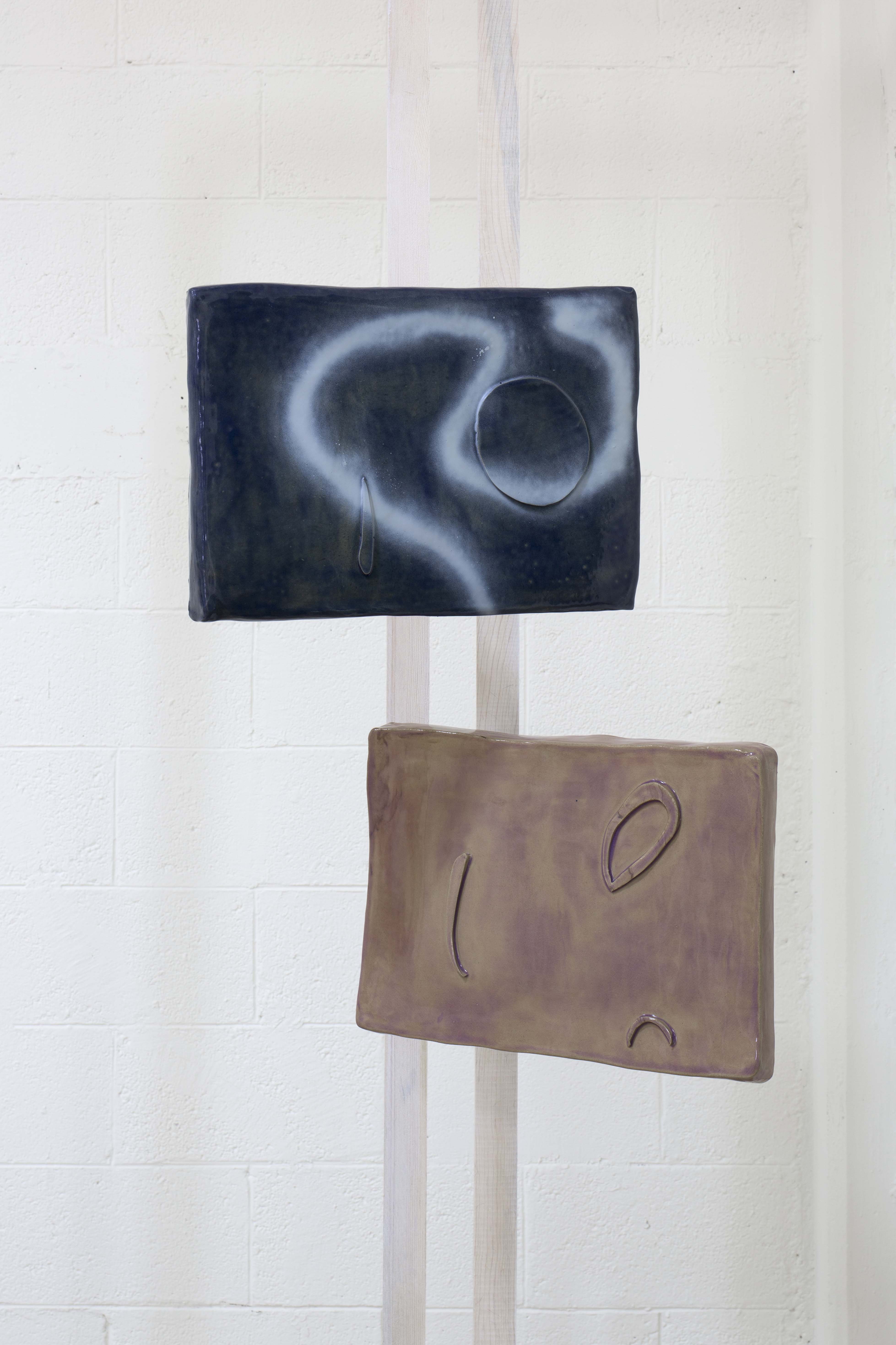 Stoneware glazed ceramics, spray paint, TV bracket